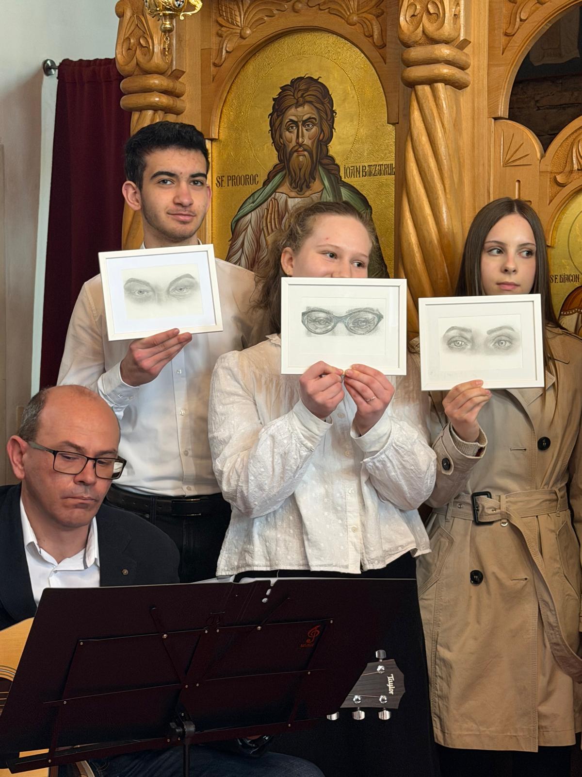 Un moment deosebit și emoționant a fost surpriza pregătită de adolescenți pentru mamele lor. Tânărul Teodor Moldovan a realizat în creion portrete reprezentând ochii mamelor, care au fost oferite acestora în semn de recunoștință și iubire.